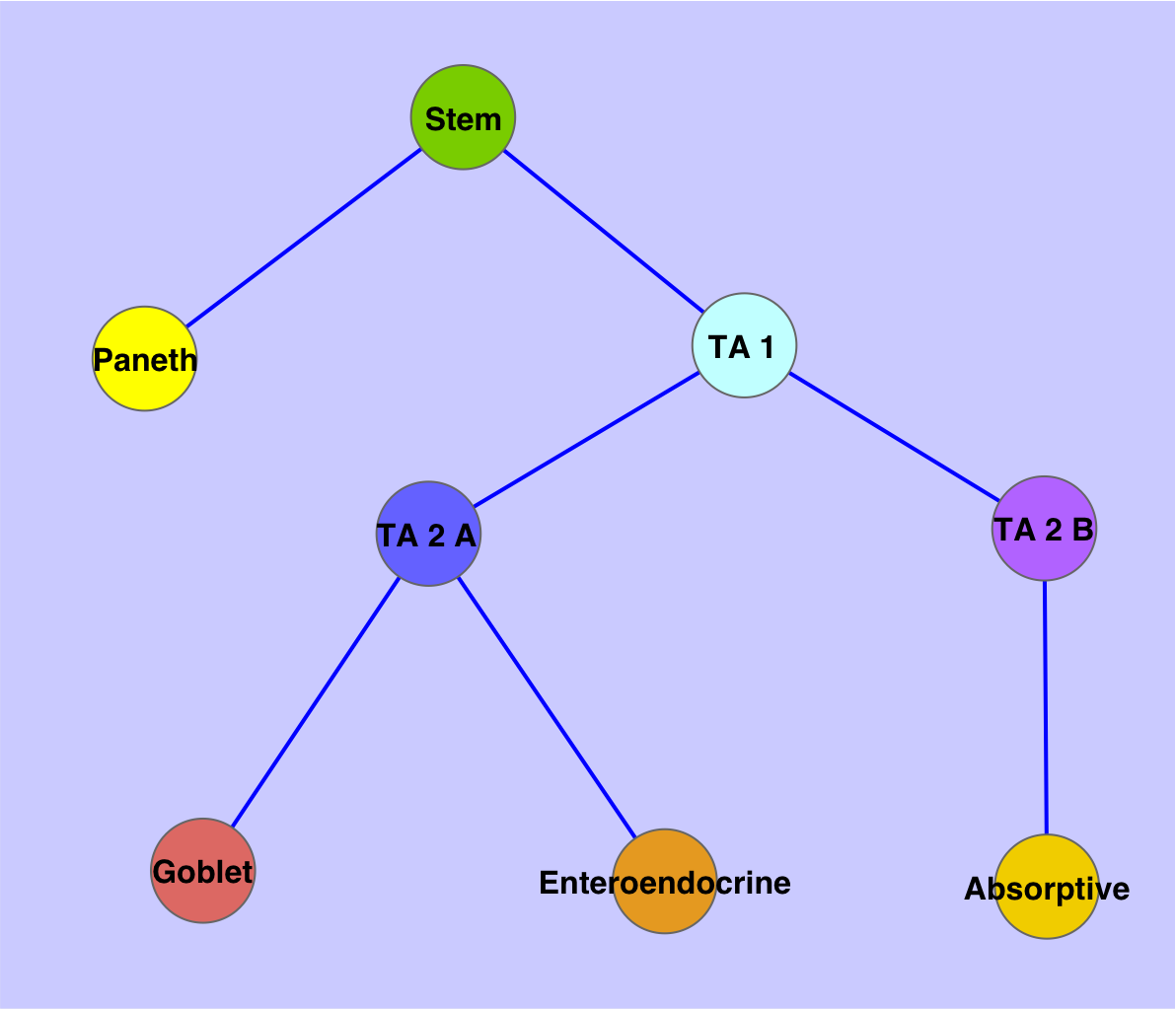 while the 4 differentiated cell types (i.e. Paneth, Goblet, enteroendocrine, absorptive or enterocyte)